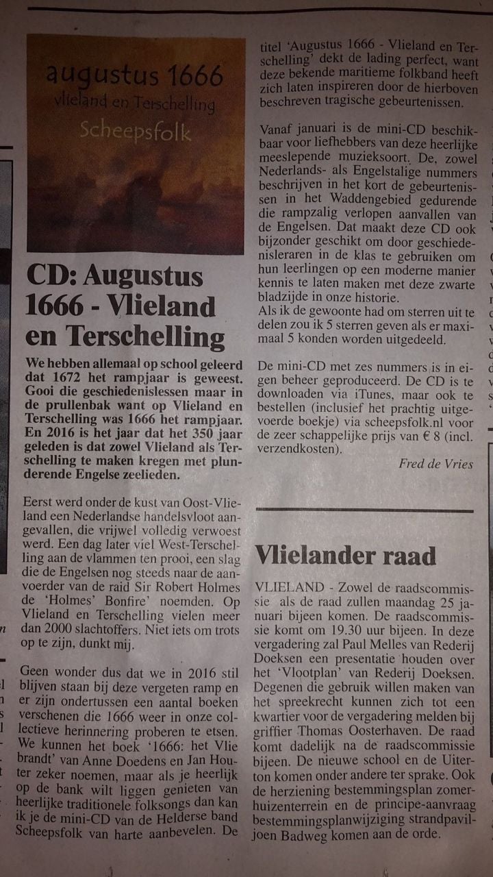 Over de gebeurtenissen in 1666 is ook een mini-cd gemaakt door de maritime folkband